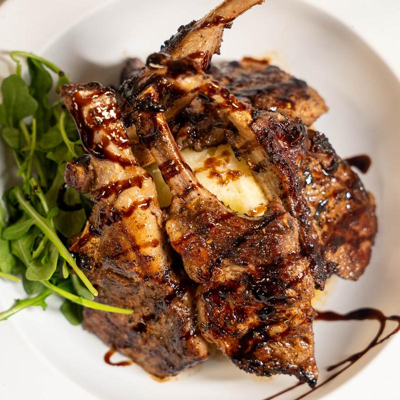 Five lamb lollipops seasoned and grilled. Served with Yukon gold mashed potatoes.